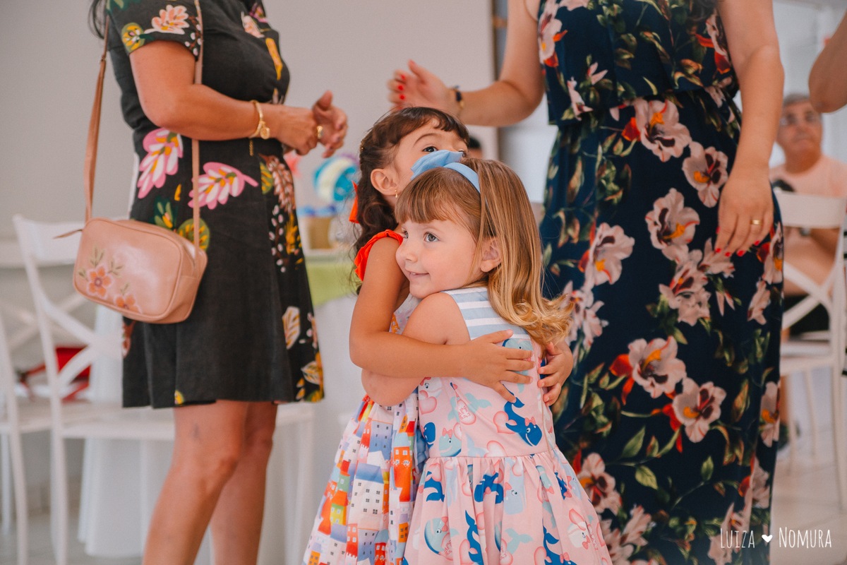 É um dia diferente pra elas então acontece da criança ficar assustada e se sentem mais seguras no colo dos pais, nesse caso é melhor poder garantir essas fotos com eles e os convidados ao lado.